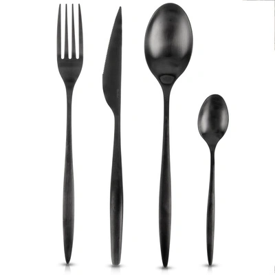 Cutlery Set Steel Black for 6 People BLACK 24 pcs