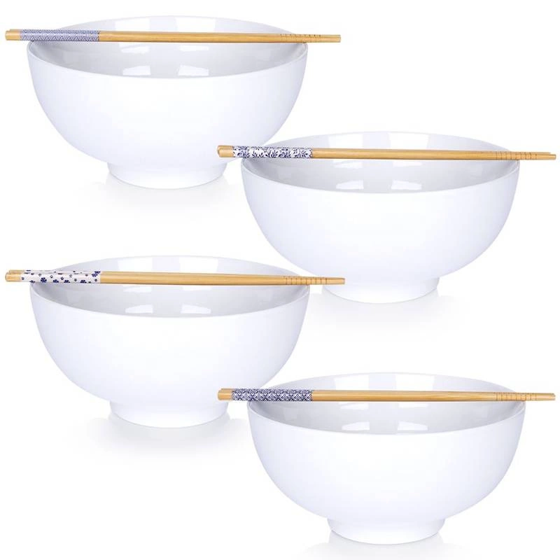 Sold outBowl for Ramen with Chopsticks Porcelain White 20 cm / 1.6 l 4 pcs