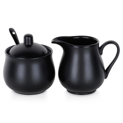 Sugar Bowl and Milk Jug Porcelain Black 3 pcs