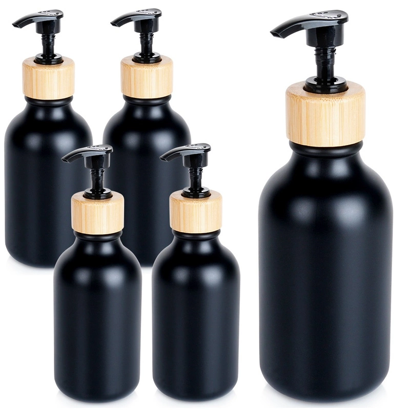 Pump Bottle Dispensers Set for Shampoo, Shower Gel, Soap, Liquid Black 300 ml 5 pcs
