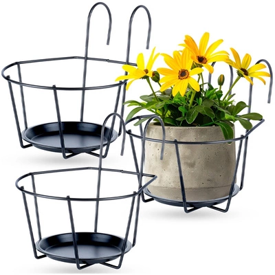 Hanging Railing Planter Metal Black 3 pcs