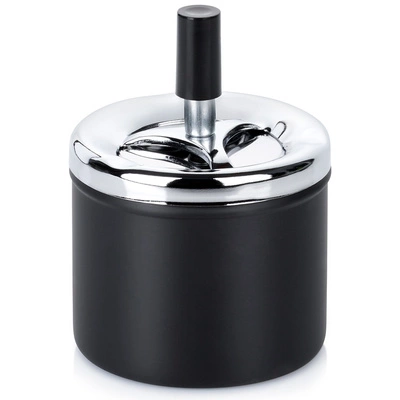 Ashtray Closed Metal Black Rotating 9.5x13 cm