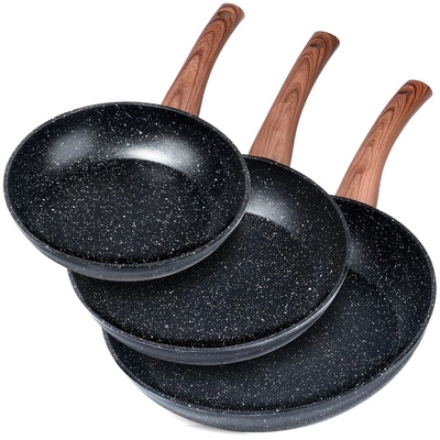 Frying Pan Set Granite with Glass Lids BLACK&WOOD 16 / 20 / 24 / 28 / 32 cm 5 pcs