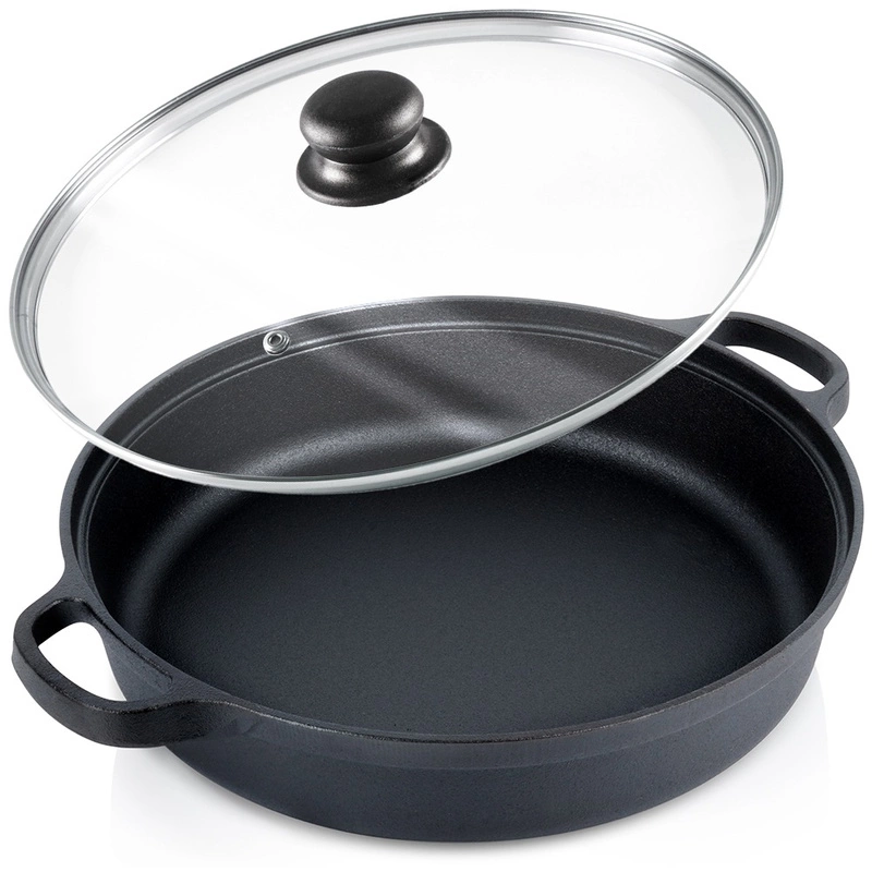 Frying Pan Cast Iron Deep with Glass Lid CAST LINE 30 cm, 3.5 l