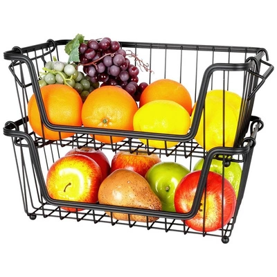Basket for Fruit and Vegetables Metal Black Loft 32x20x13.5 cm 2 pcs