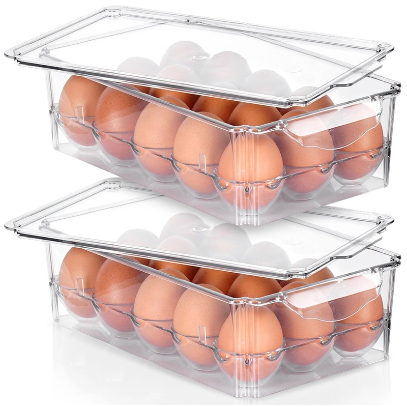 We offer egg containers in different sizes, including for 10, 12, and even 30 eggs. These practical containers ensure the safe storage of eggs, preventing them from breaking and maximizing space in the fridge.