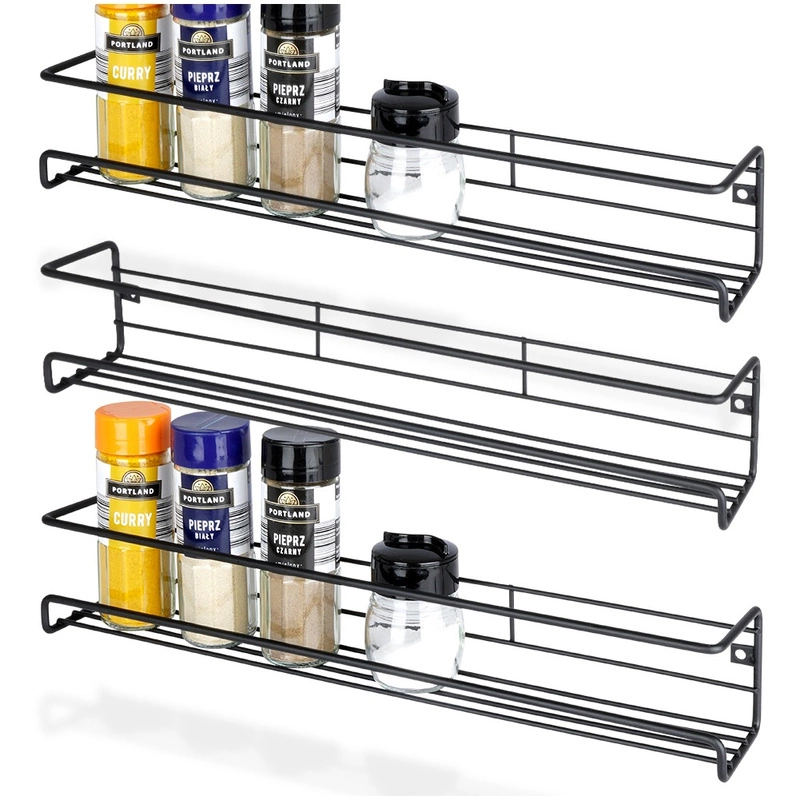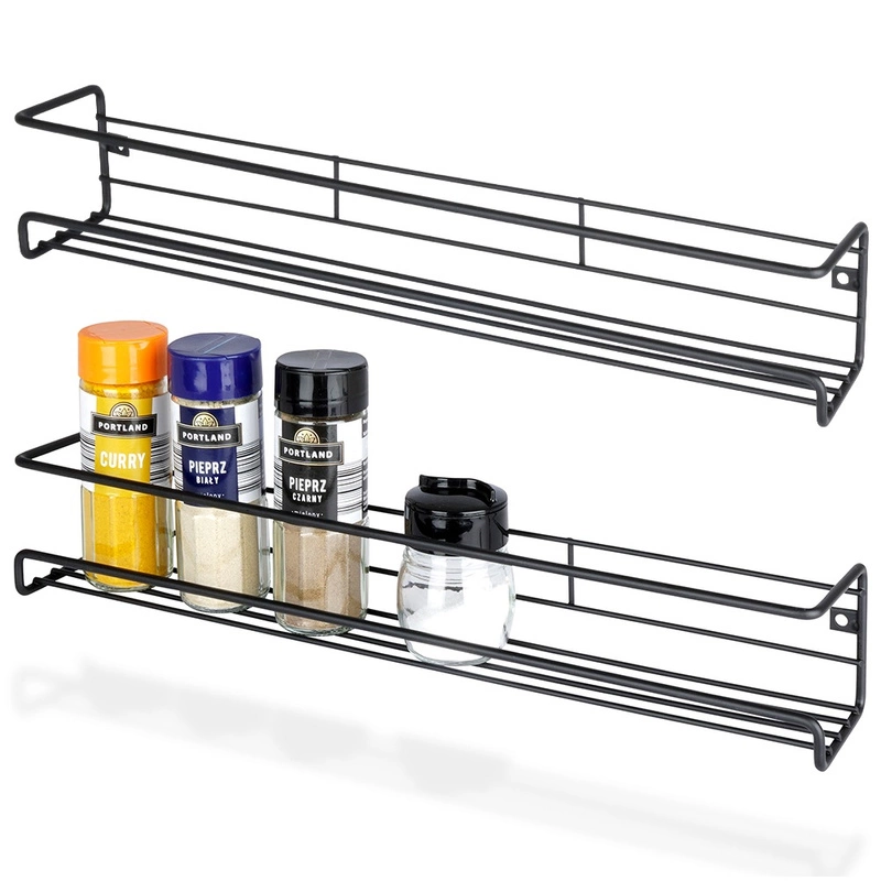 We offer spice racks made from various materials, including metal and wood, which blend beautifully with any interior. A black metal kitchen shelf is elegant and modern, while a wooden one adds warmth and a natural character to the interior.