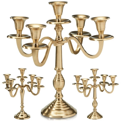 Candle Holder for Long Candle Aluminum Golden 15 / 19 / 24 cm 3 pcs