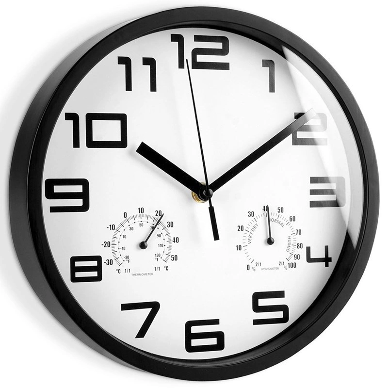 Wall Clock Black with Thermometer Hygrometer 25 cm