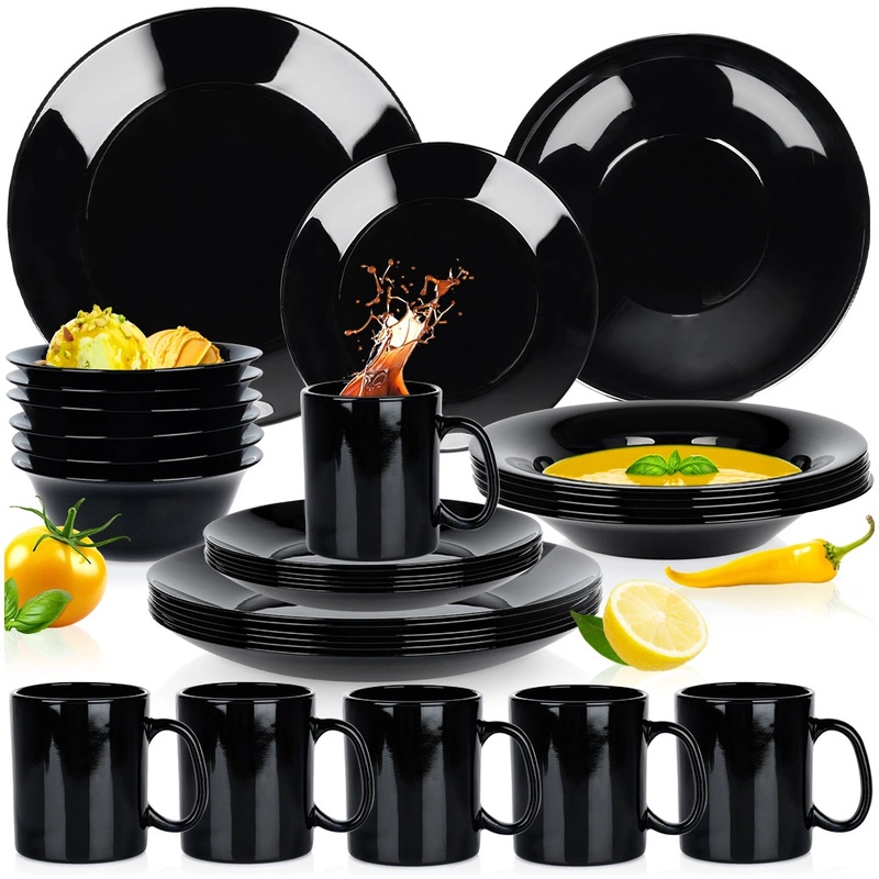 Zestaw serwis obiadowy szklany czarny 30 el.