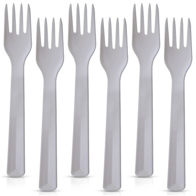 Widelce stołowe plastikowe szare SANDY 18 cm 6 szt.