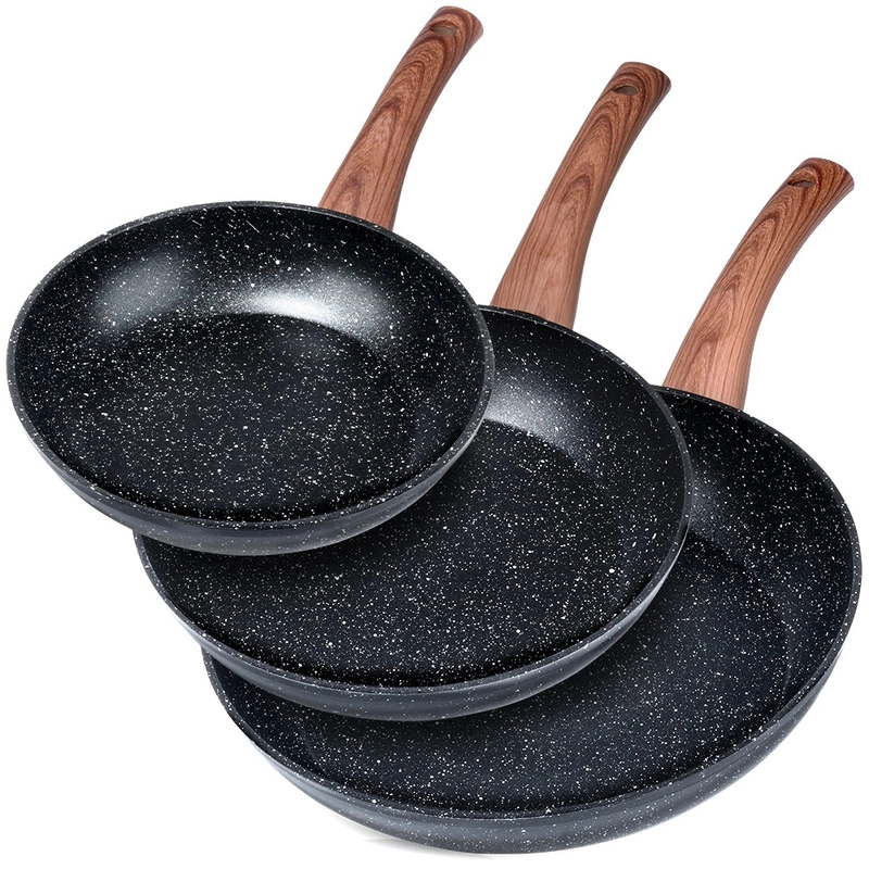 Zestaw patelni granitowy 20 / 24 / 28 cm + Patelnia do jajek 4 szt. BLACK&WOOD