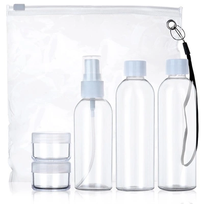 Butelki pojemniki podróżne na kosmetyki do samolotu z kosmetyczką 5 el.
