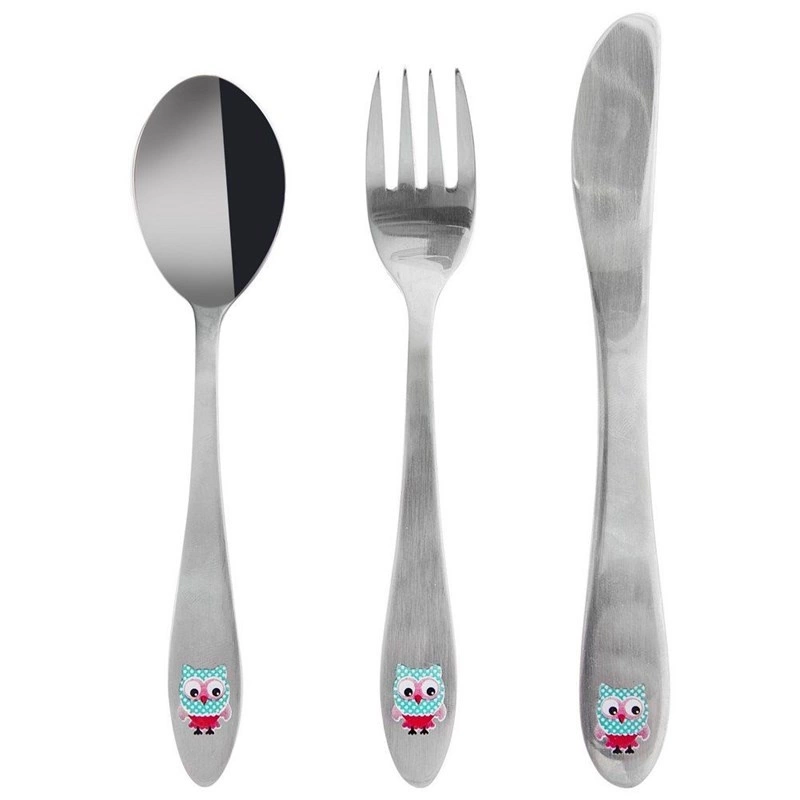Sztućce dla dzieci stalowe SOWA 3 el.